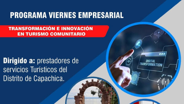 Asistencia a prestadores turísticos del distrito de Capachica para fortalecer sus productos y servicios. Se trabajó en herramientas de innovación, experiencia turística y estrategias de comercialización.
